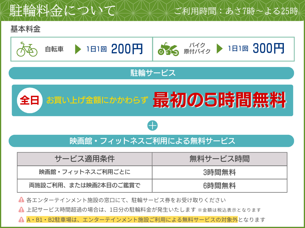 映画館・フィットネスご利用ごとに さらに3時間無料