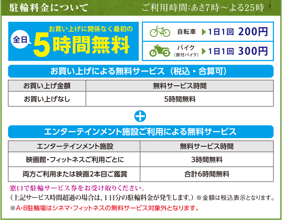 2店舗以上でのお買上で さらに1時間無料