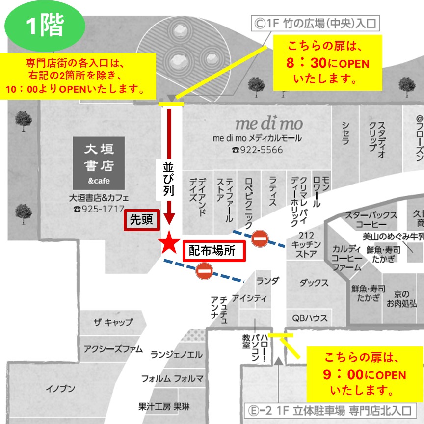 ※1F 竹の広場(中央)入口は8:30にOPENいたします。